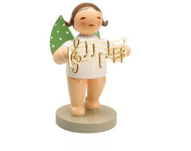 Angel with musical staff on a metal base, gilded, in a chipboard box