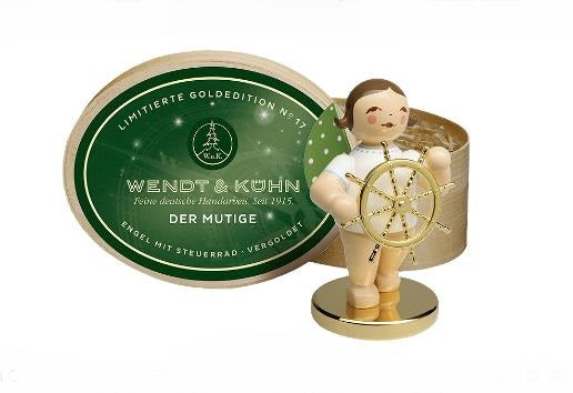The Brave, angel with steering wheel, gold-plated, height 6 cm