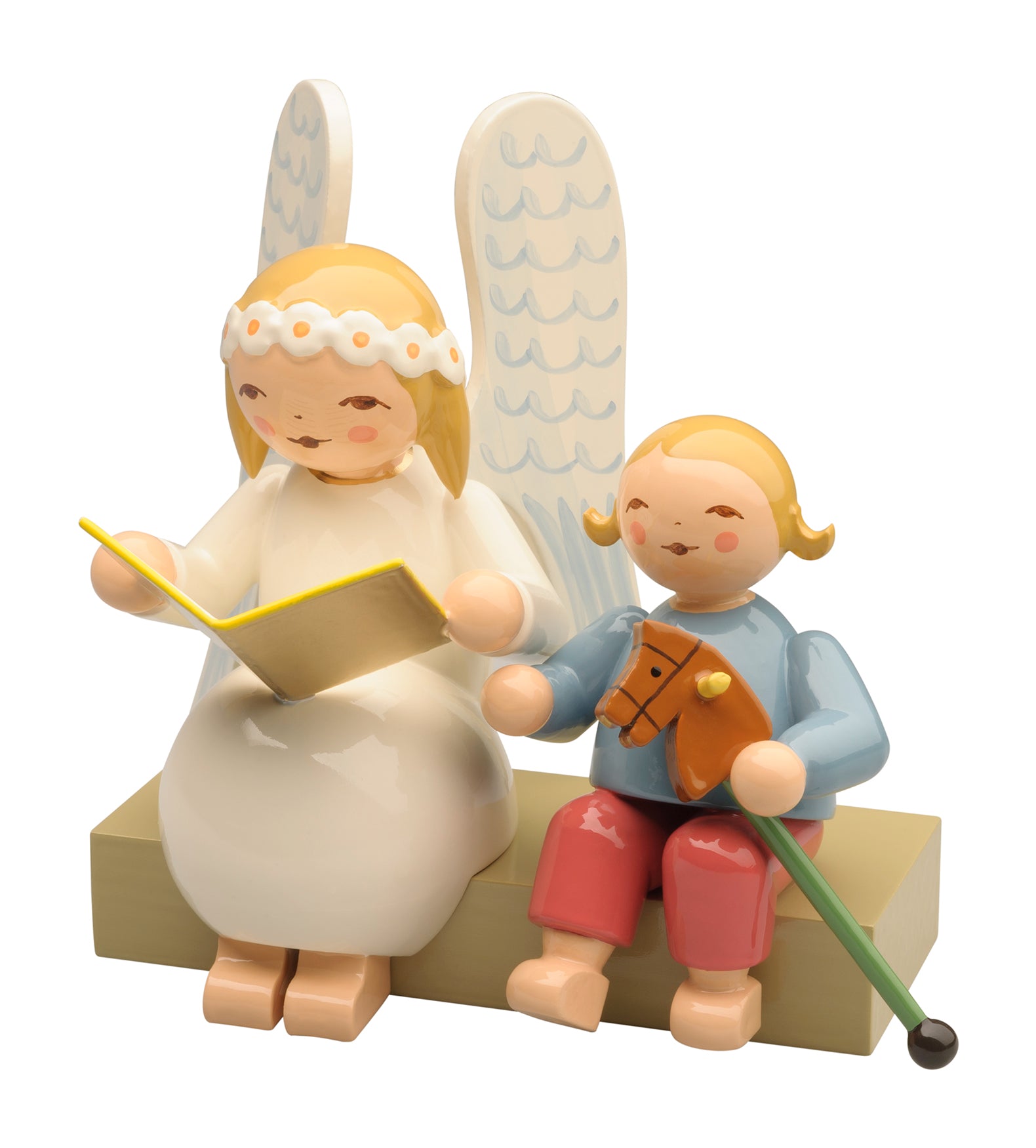 Marguerite angel on bench, with boy