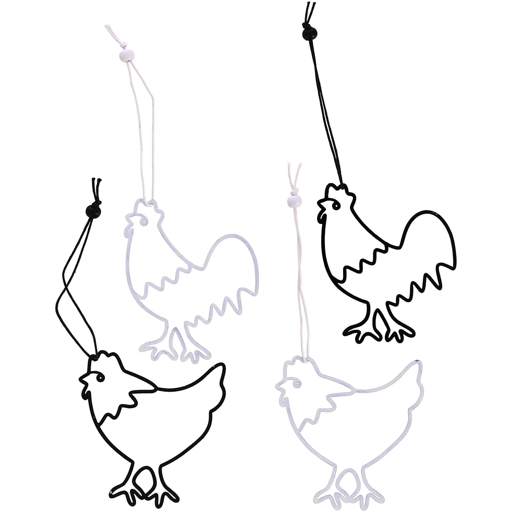 Metal chicken for hanging, 2 motifs, 2 colours, H9/8.5cm, black/white
