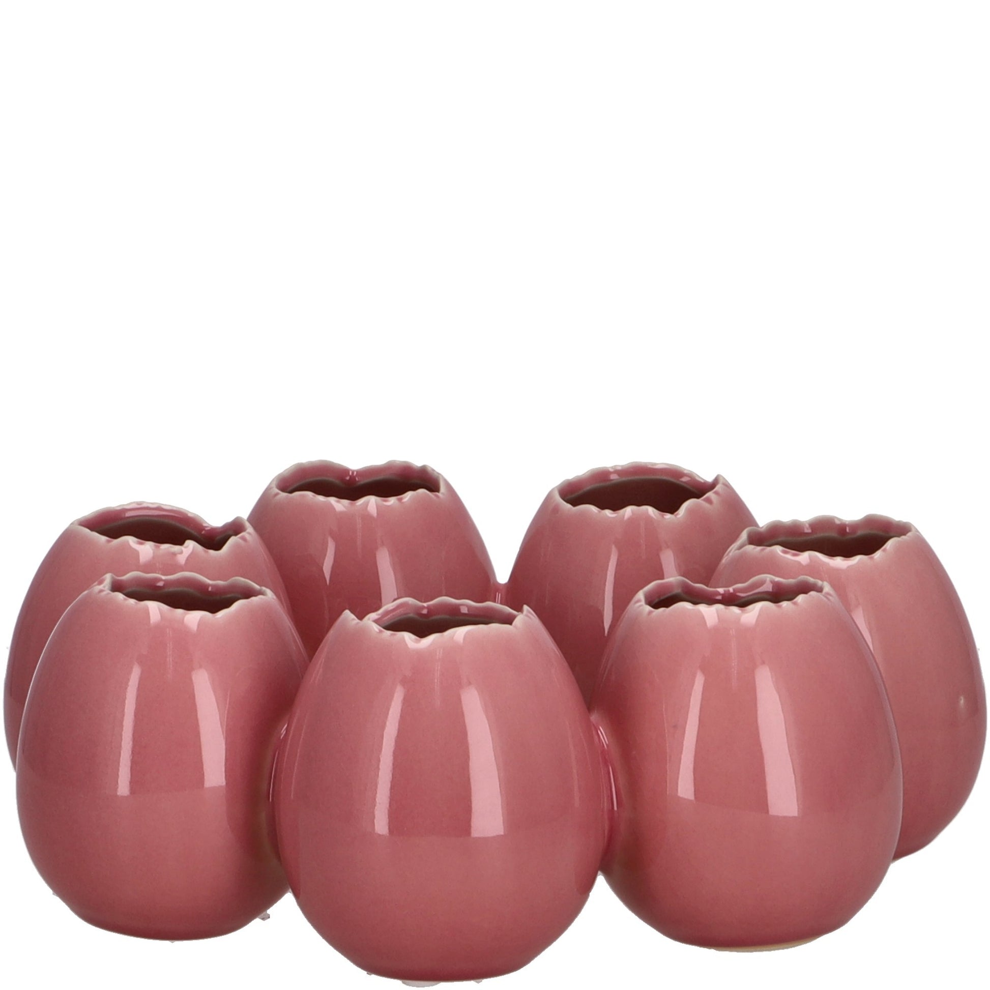 Keramik Eier, x7, D27cm, H9,5cm, Minieiervasen als Kranz, pink