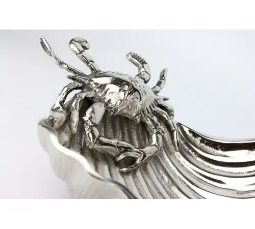 Entdecken Sie die exklusive Muschelschale "Ocean", ein Kunstwerk, das Eleganz und Natürlichkeit in jedem Raum vereint. Diese hochwertige Dekorationsschale aus feinem silbernen Material ist nicht nur ein Hingucker, sondern auch das perfekte Accessoire für den anspruchsvollen Einzelhandel im Bereich Wohnen und Lifestyle. Mit ihrer filigranen Verarbeitung und dem detailgetreuen Krebs, der vorsichtig auf der Schalenkante platziert ist, zieht die Muschelschale "Ocean" alle Blicke auf sich und verwandelt jede Umgebung in eine stilvolle Wohlfühloase.
