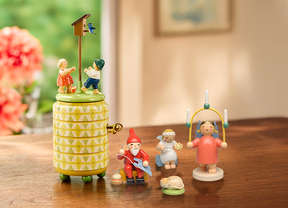 Achetez maintenantElles sont richement équipées, peintes avec imagination et équipées de mécanismes musicaux de qualité suisse : les boîtes à musique de Wendt & Kühn. Les chants de Noël traditionnels, les mélodies printanières ou les sons des valses, associés à des figures joyeuses, réveillent des souvenirs, nous bercent ou nous font faire une pause dans la journée. L'artisanat et les chefs-d'œuvre techniques se marient parfaitement ici.