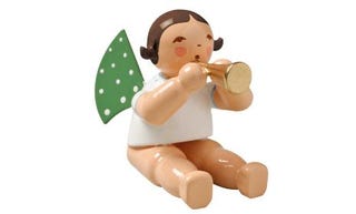 Ange original Wendt & Kühn avec petite trompette, assis, sans socle.