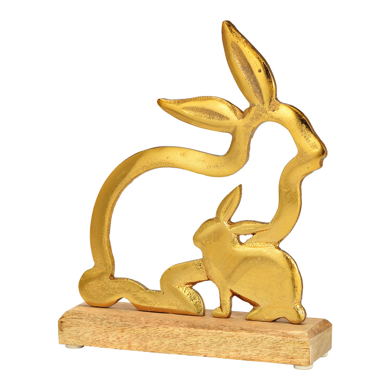 Aufsteller Hase auf Mangoholz Sockel aus Metall, 18 x 22 x 5 cm