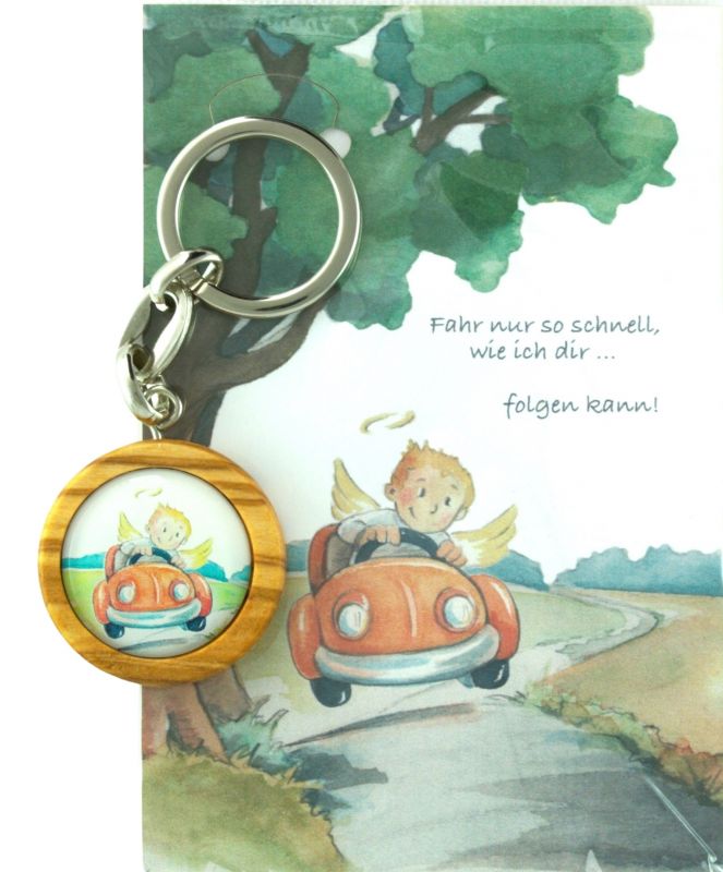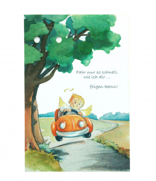 Schlüsselanhänger Fahr nur... Schutzengel-Autofahrer 3,3 cm, Gesamt 9 cm/ Karte12x8
