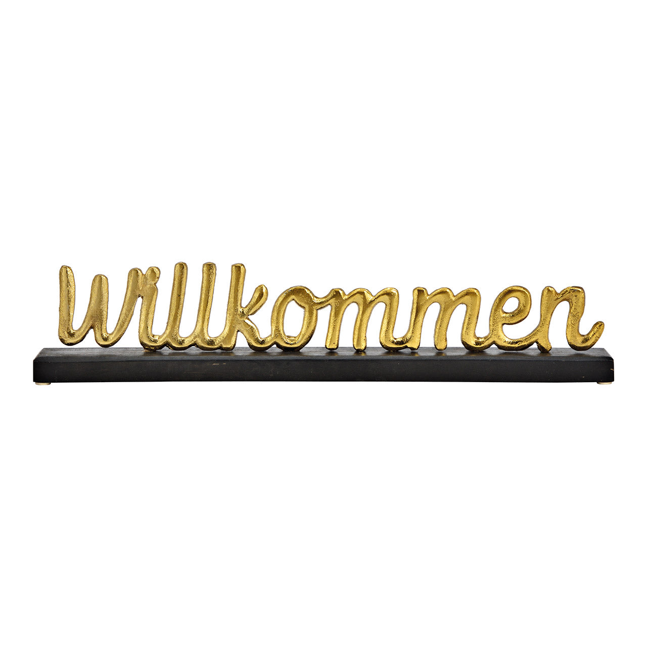 auf Mangoholz Sockel, aus Metall Gold, schwarz, 50 x 10 x 5 cm
