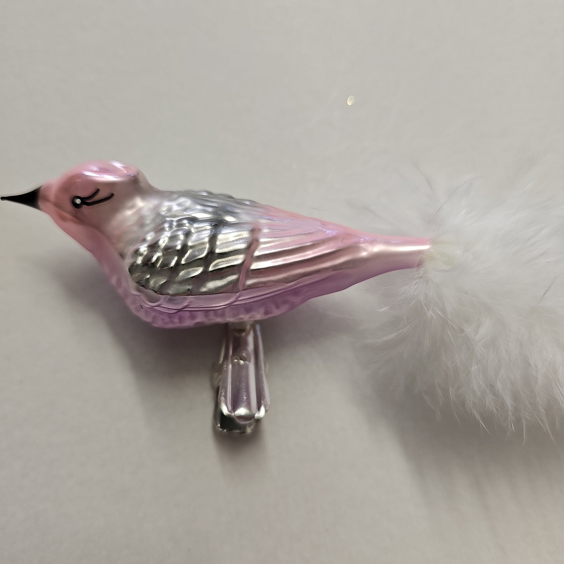 Original Lauscha rosa Vogel, handgefertigt, aus Glas mit Klipp. Ca 15 cm.